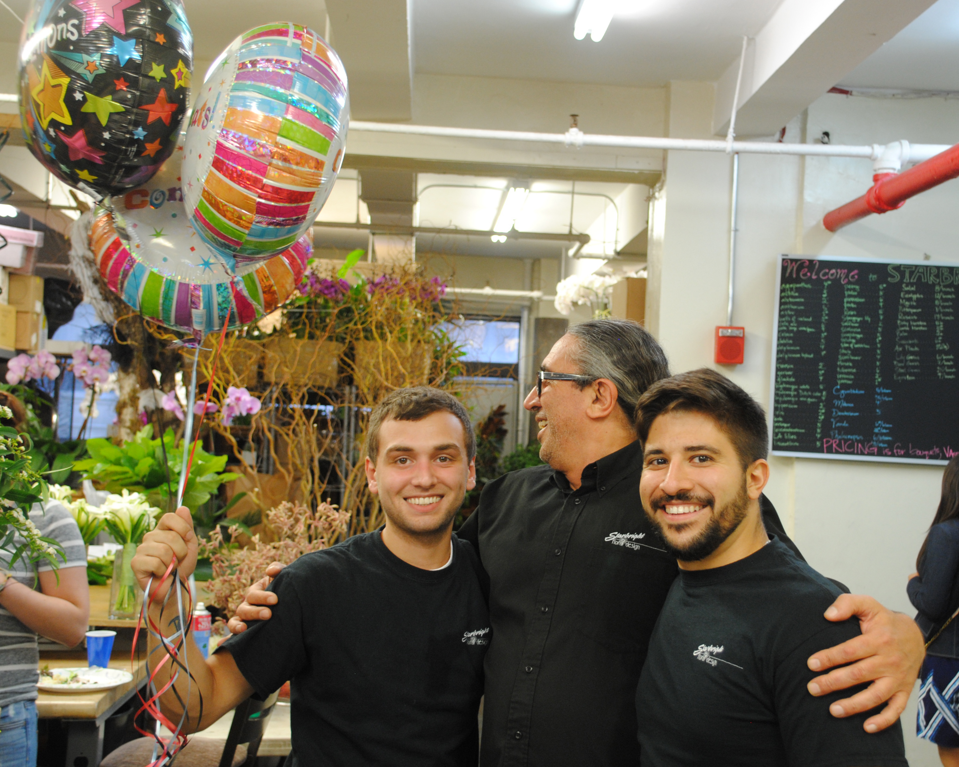Nestled in the heart of New York’s historic flower district, Starbright Floral Design has been delivering arrangements of the highest quality for over twenty years. We celebrated our anniversary last week in the shop with lots of arrangements, delicious food from Niles NYC, and birthday cakes for the shop and for “the man that makes it happen”, Costas!