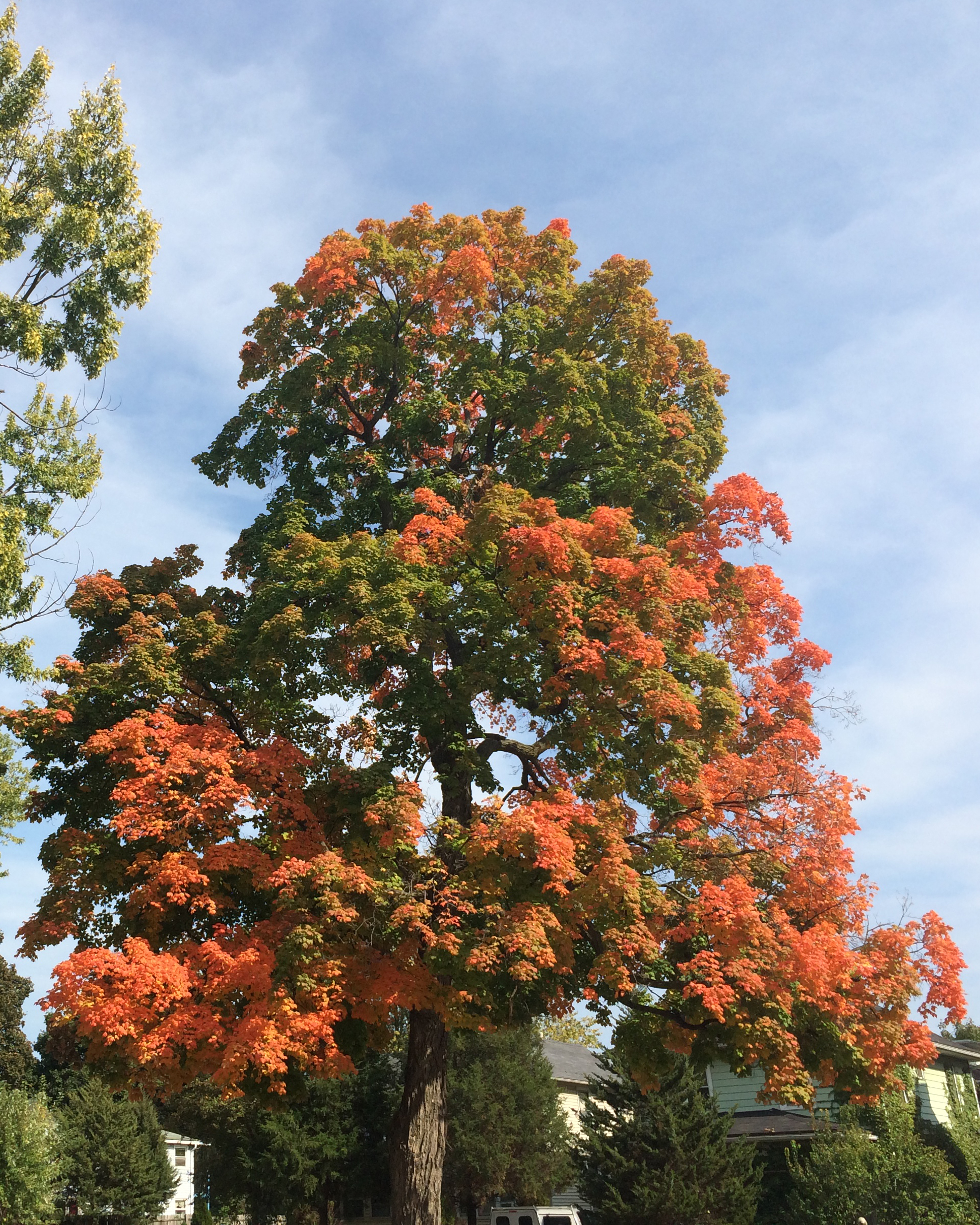 Before we get there, though, let’s look into why all these trees change color in the first place. Think back to highschool life science classes – you learned about how plants maintain homeostasis (the correct balance of chemicals, temperature, and moisture for sustaining life) by converting energy from sunlight into the ability to process nutrients. The sunlight gets converted by a cellular organism (the “cells that make up a cell,” as it were) called chlorophyll, which resembles a little green pill floating around in the cells that make up leaves. It’s important to remember that leaves, like most living things, are translucent. When the light of the sun shines through a leaf, it has to pass through so much chlorophyll that it makes the leaf look green along the way. In reality, though, that leaf has a color, and it’s probably not green – by the time autumn rolls around, all of the chlorophyll has decayed and is no longer it’s bright emerald green. Now, when the sunlight shines through the leaf, we get to see the plant’s original color. In general, most of the colors are warm – lots of golds, reds, maroons, oranges and browns. As the season wears on, these pigments will start to decay as well – that’s why we see the tones on the trees get more and more “earthy” as we get closer to winter.