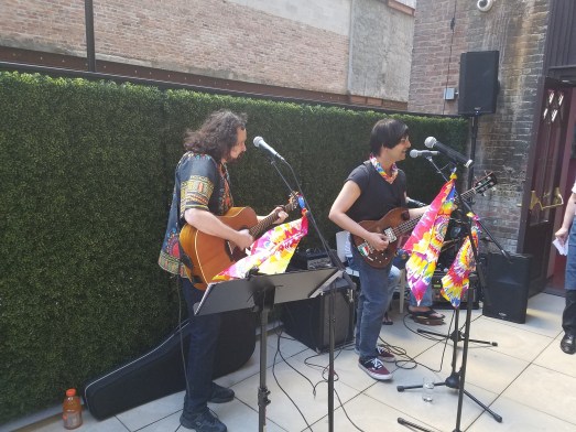 Of course, to honor the Summer of Love, there had to be tie-dye involved and the reception for the San Francisco Travel Office was awash in a sea of rainbows. With a tie-dyed table cloth setting off our Flower Child Creations table that was filled with flowers for guests to make their own compositions and tie-dyed clothes wrapped around the microphones of the band, the 60’s were in the air.