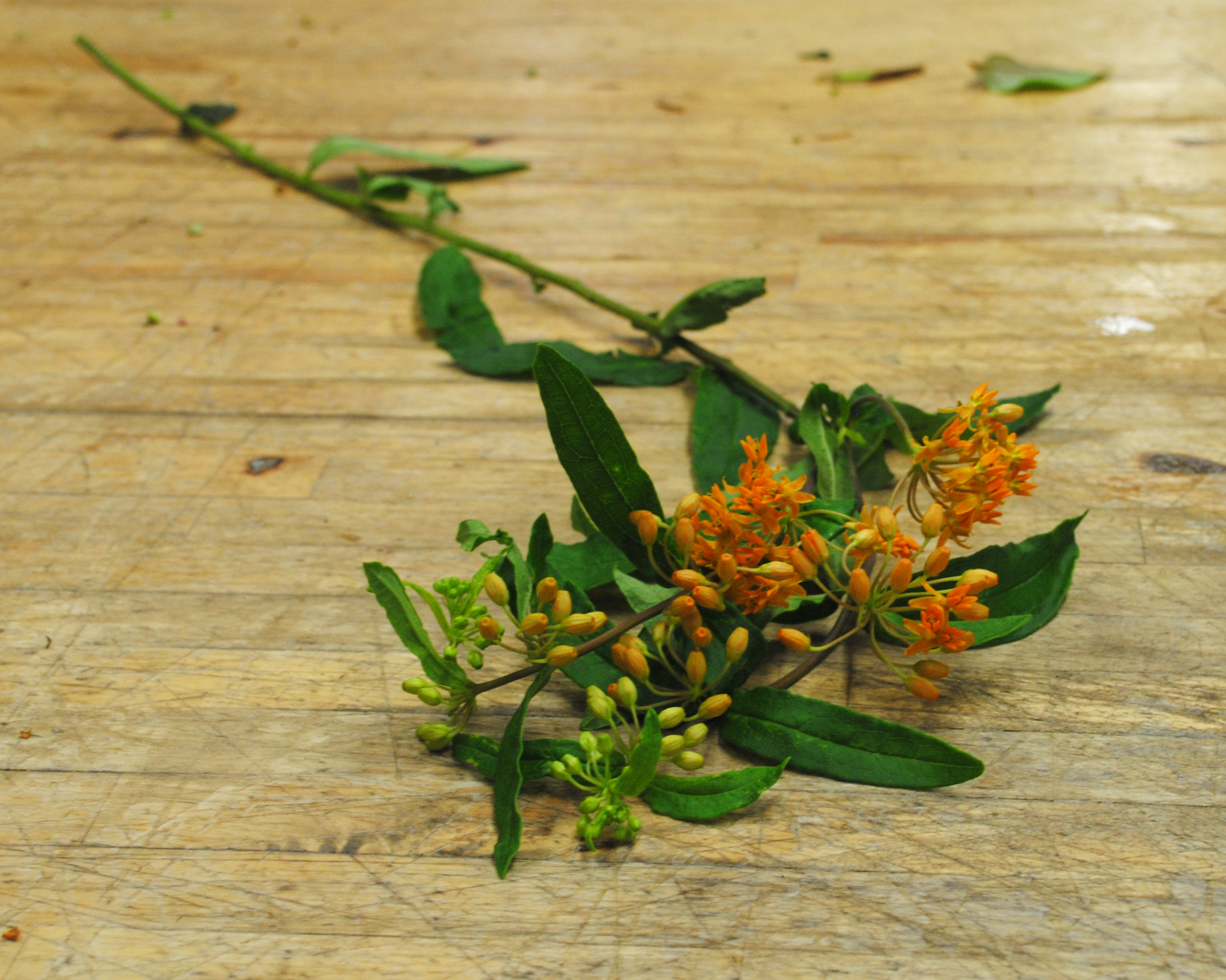 Alsclepia is an herbacious perennial. The photo above is of Butterfly bush, but other great varieties available throughout summer, include the pink and white asclepia syriaca, the purple pink asclepia speciosa, and the bright yellow and bicolored yellow-orange asclepia curassavica or tropical milkweed.